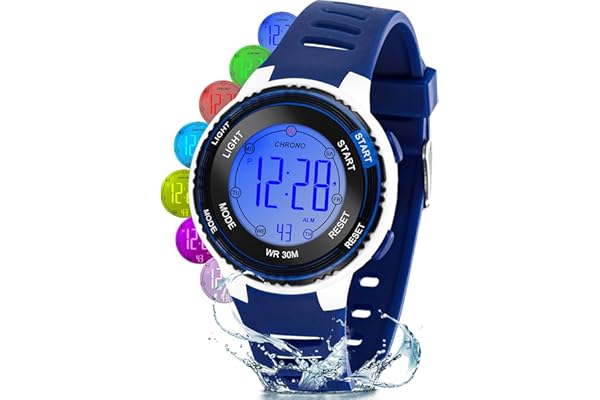 #1:DTKID Digital Kids Watch 30 M Waterproof, 7 Color Lights Time Teaching Watch Easy to Read for Girls Boys 5-16